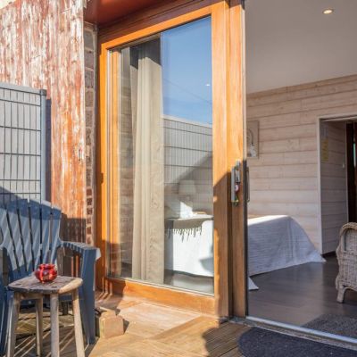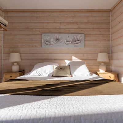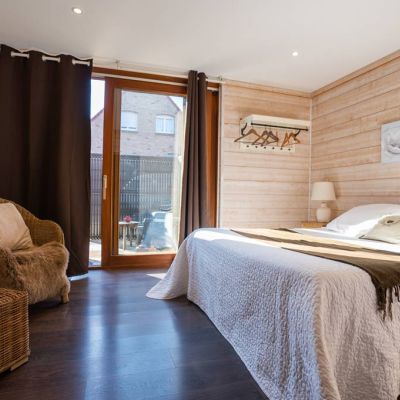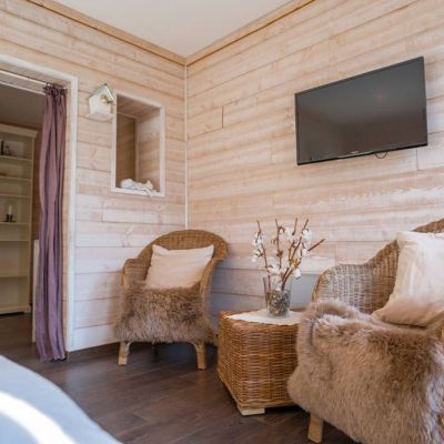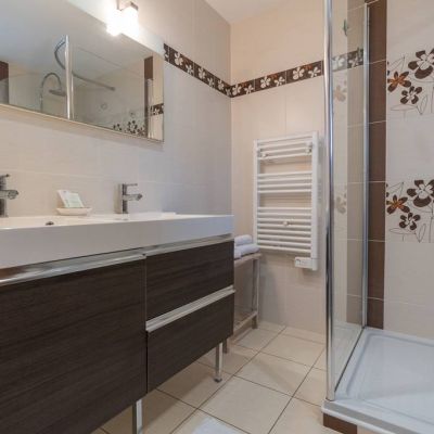 Chambre en RDC spacieuse et agréable comprenant un lit double 160cm, terrasse privative avec mobilier salon, salle de bain avec douche et WC privés.