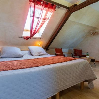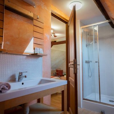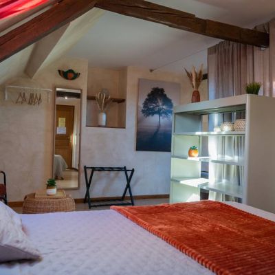 Chambre spacieuse et agréable comprenant un lit double + 2 lits double (140 et 160cm), salon, salle de bain avec douche et WC privés.